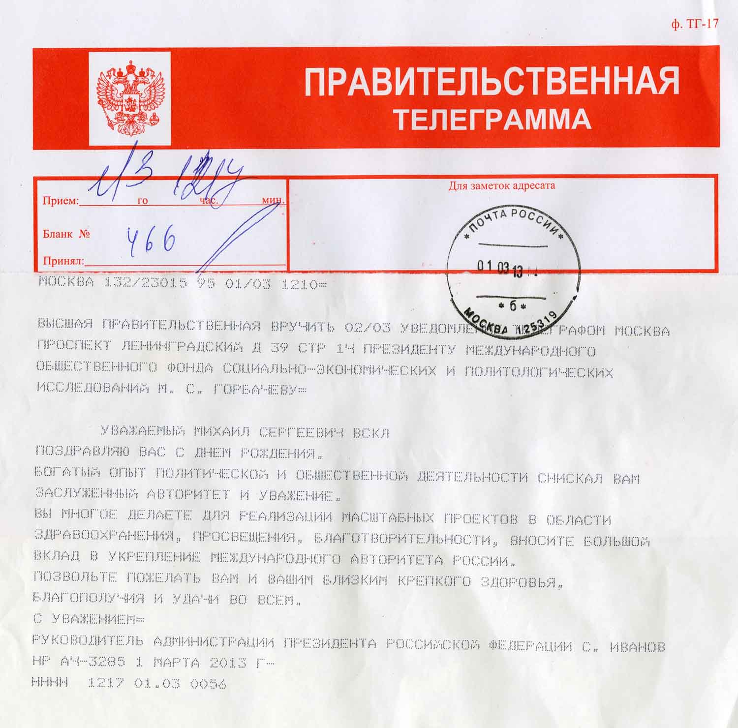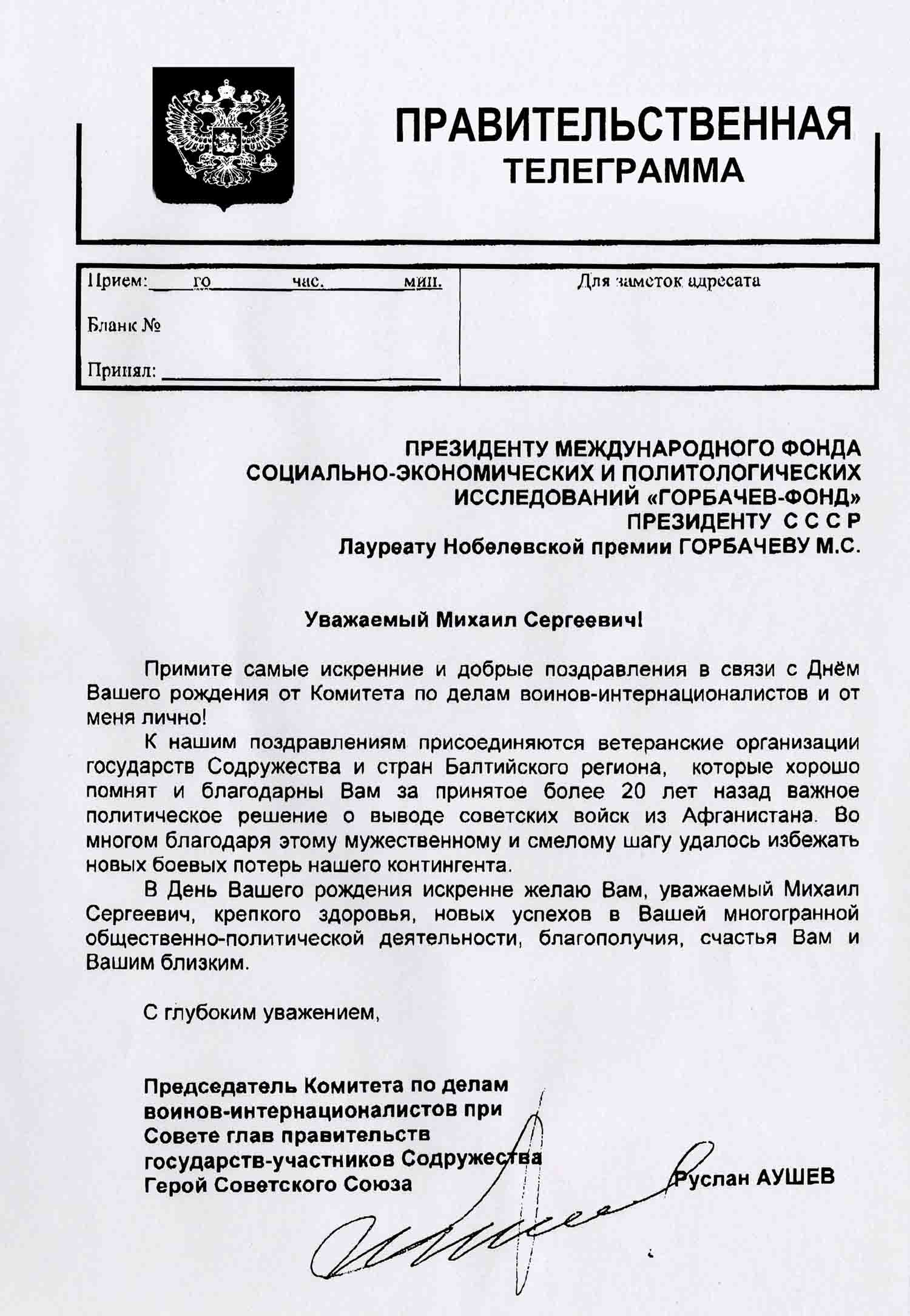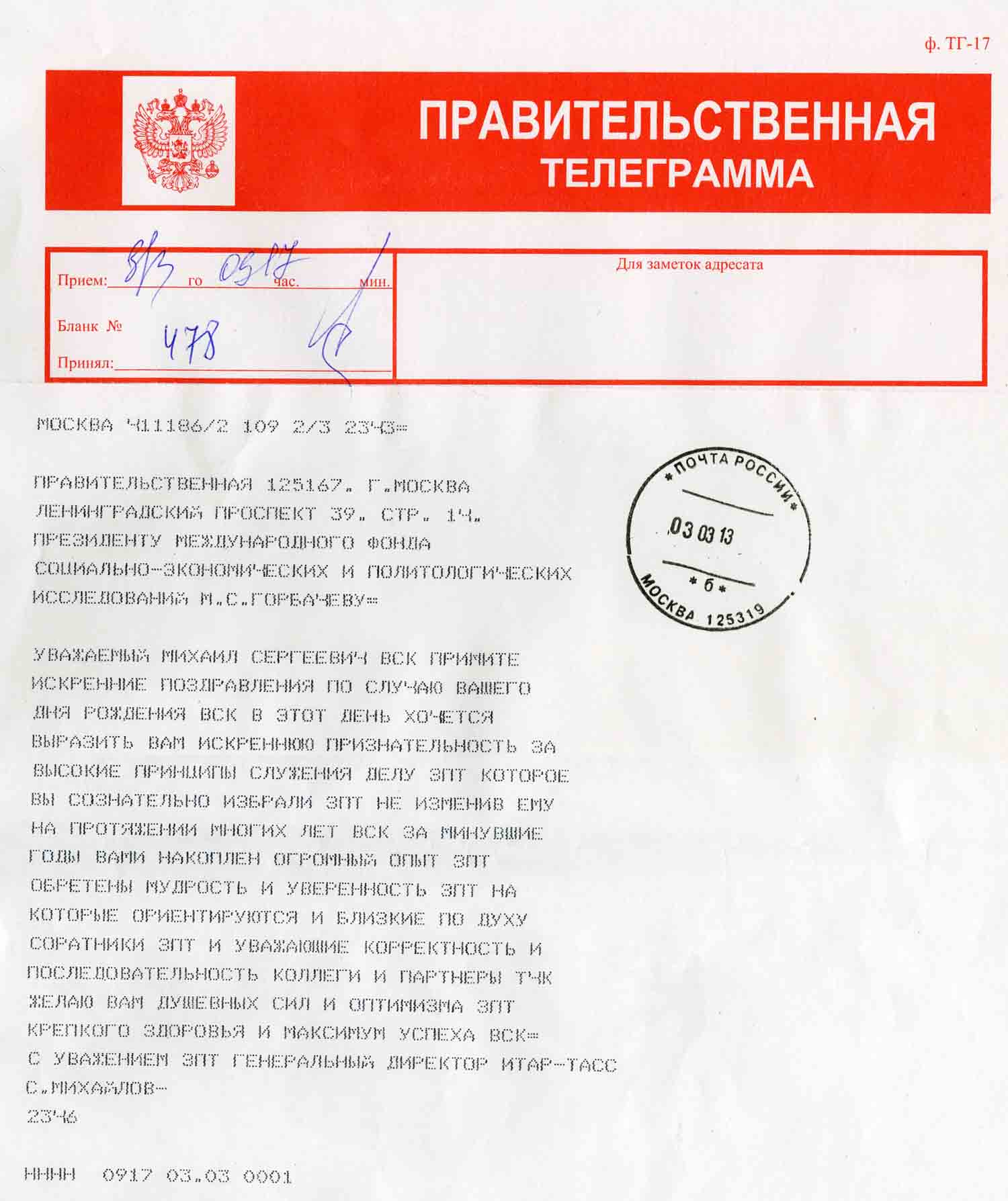 Михаила Сергеевича Горбачева поздравляютПРАВИТЕЛЬСТВЕННЫЕ ТЕЛЕГРАММЫ