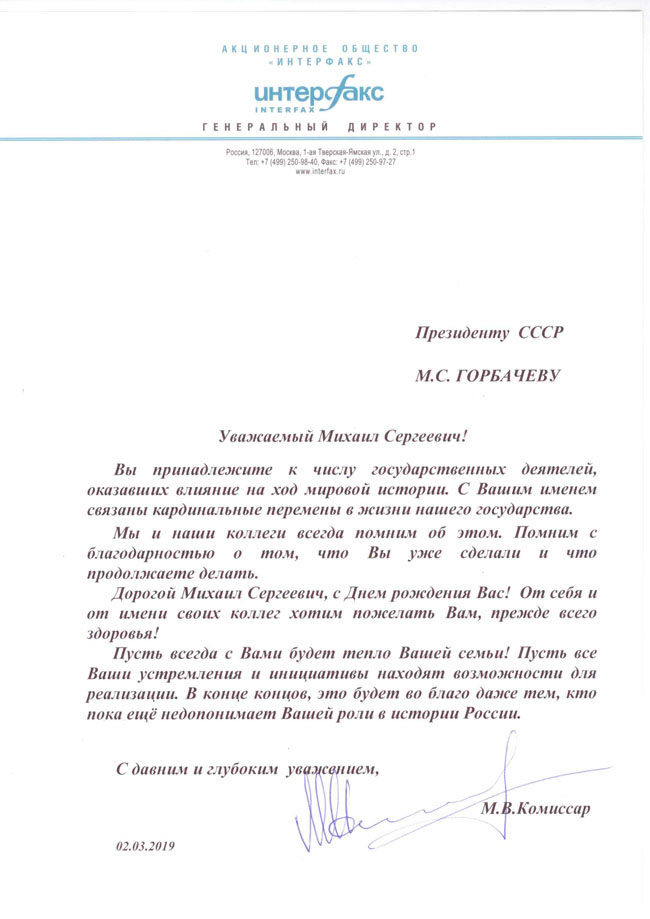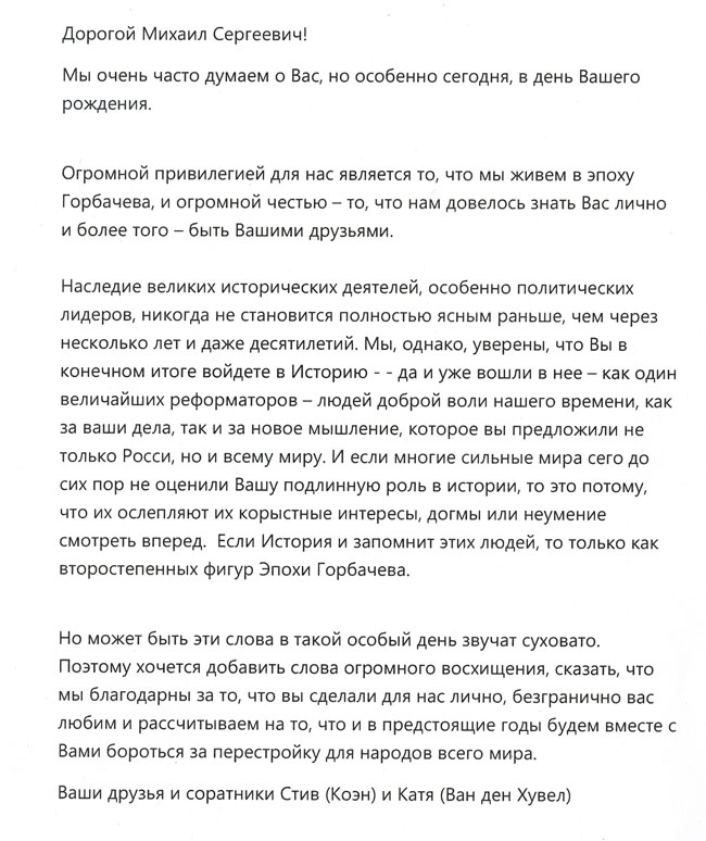 Глубокоуважаемый, дорогой Михаил Сергеевич Горбачев,