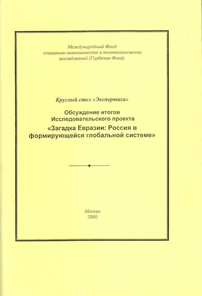 Загадка Евразии: Россия в формирующейся глобальной системе: Обсуждение итогов Исследовательского проекта: Круглый стол "Экспертиза". - М.: Горбачев-Фонд. - 2000. - 143 c.