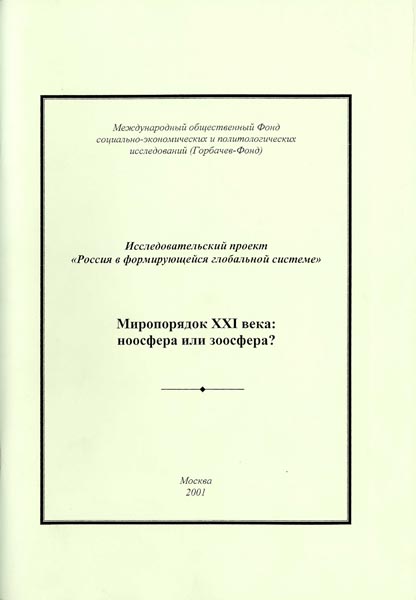Миропорядок XXI века:ноосфера или зоосфера? : Круглый стол "Экспертиза" (9 апреля 2001). - М.: Горбачев-Фонд. - 2001. - 130 с.