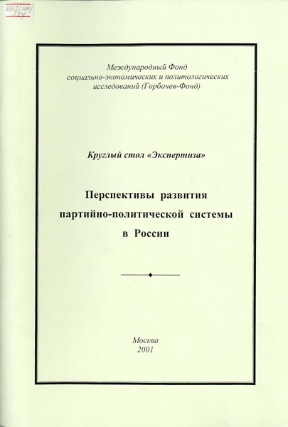 Глобализация и Россия. Круглый стол "Экспертиза" (5 января 2001). - М.: Горбачев-Фонд. - 2001. - 120 с. Меняющийся мировой контекст и место России: Круглый стол "Экспертиза". - М.: Горбачев-Фонд. - 2001. - 106 с.![]() Перспективы развития партийно-политической системы в России: Круглый стол "Экспертиза" (23 февраля 2001). - М.: Горбачев-Фонд. - 2001. - 138 с.
