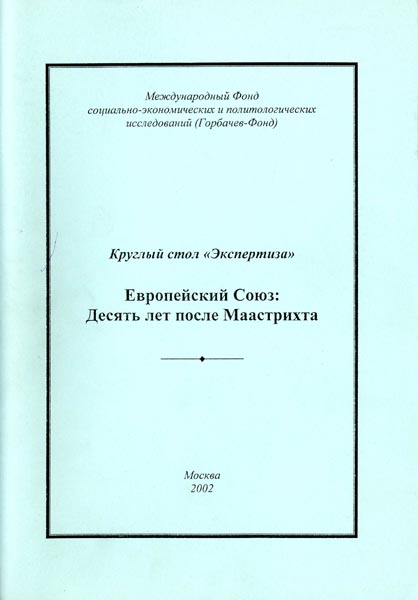 Европейский союз: десять лет после Маастрихта. Круглый стол "Экспертиза" (24 декабря 2001). - М.: Горбачев-Фонд. - 2002. - 106 с.