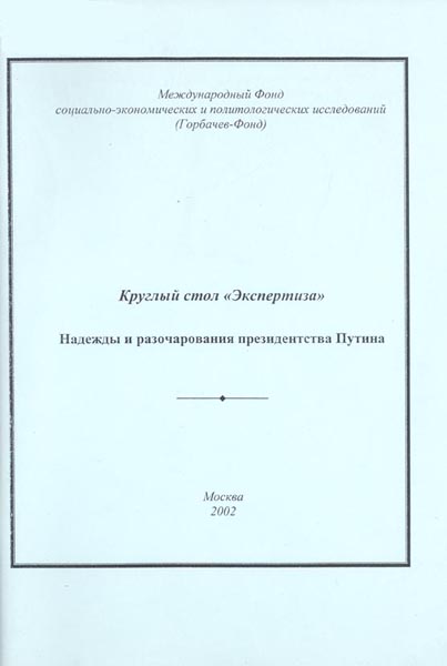 Надежды и разочарования президентства Путина: Круглый стол "Экспертиза". Горбачев-Фонд. – М.: 2002. - 135 с.