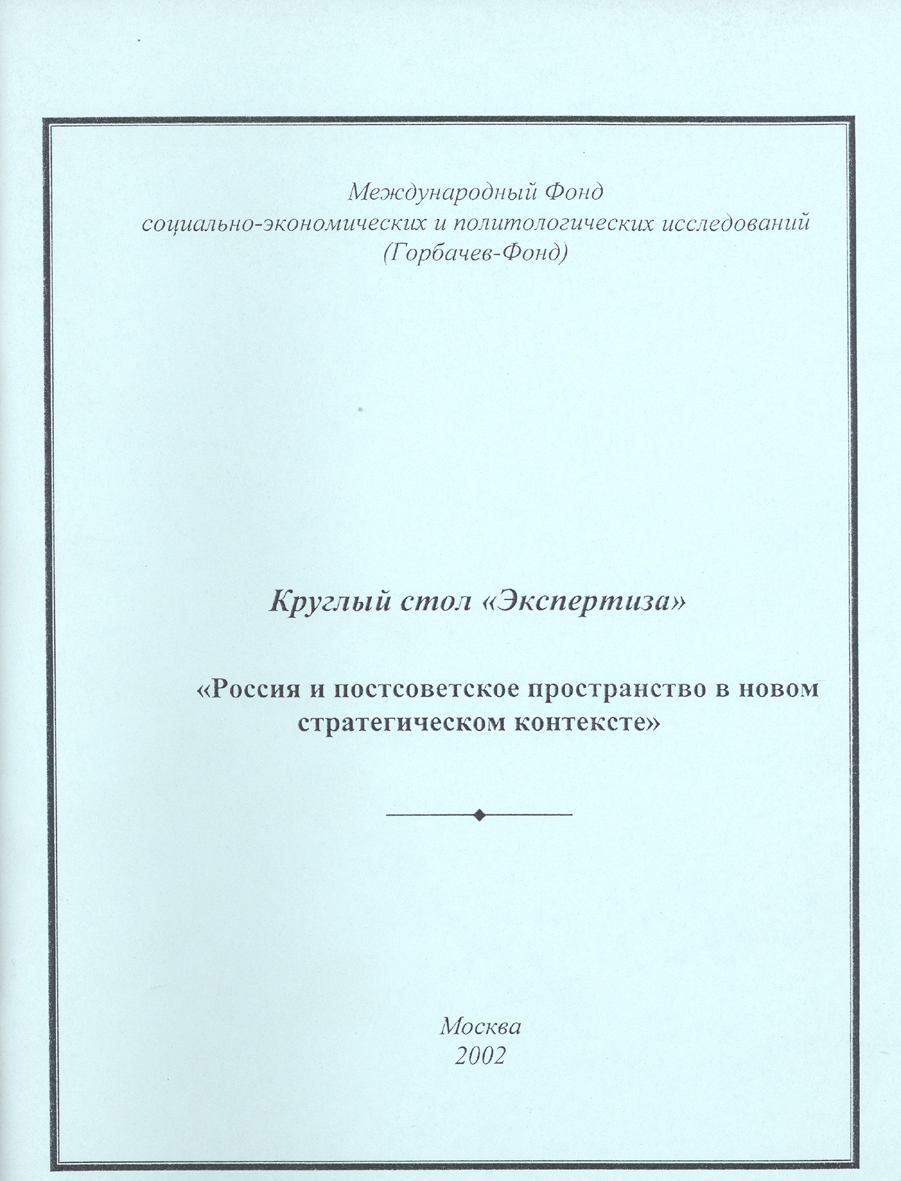 Россия и постсоветское пространство в новом стратегическом пространстве: Круглый стол "Экспертиза" (12 июня 2002). Горбачев-Фонд. – М.; 2002. - 90 с.
