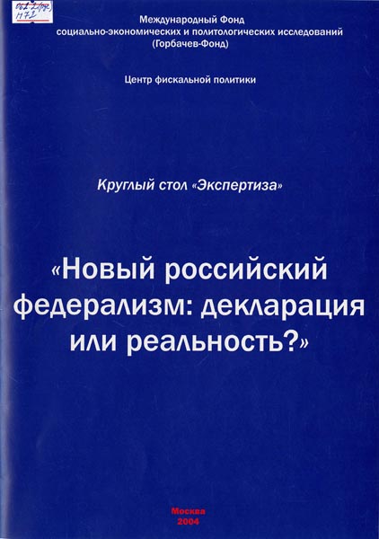 Новый российский федерализм: декларация или реальность?: Круглый стол "Экспертиза". Горбачев-Фонд; Центр фискальной политики. – М.; 2004. - 52 с.
