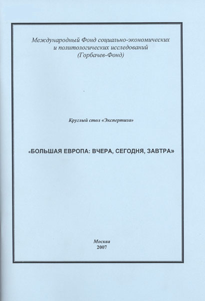 Большая Европа: вчера, сегодня, завтра: Круглый стол "Экспертиза" (27 сентября 2007). Горбачев-Фонд. – М.; 2007. - 60 с.