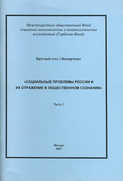 Социальные проблемы в России и их отражение в общественном сознании. Ч.1.: Круглый стол "Экспертиза" (27 февраля 2007). Горбачев-Фонд; Ино0центр; Фонд «Новая Евразия». – М.; 2007. - 92 с.