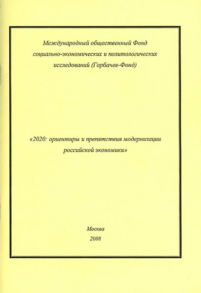 2020: Ориентиры и препятствия модернизации российской экономики: Круглый стол "Экспертиза" (10 июня 2008).//Отв. Редактор В.Б.Кувалдин; Горбачев-Фонд. – М.; 2008. - 109 с.