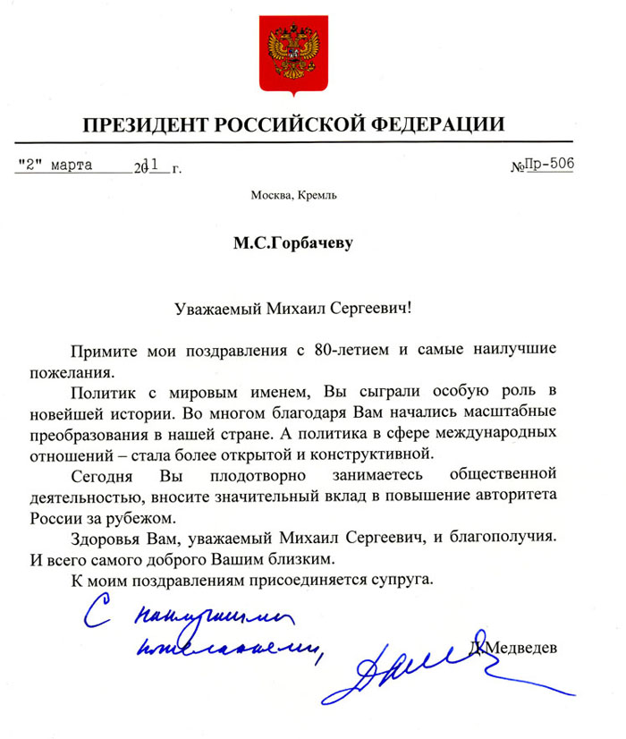Дорогой Михаил Сергеевич! С уважением,