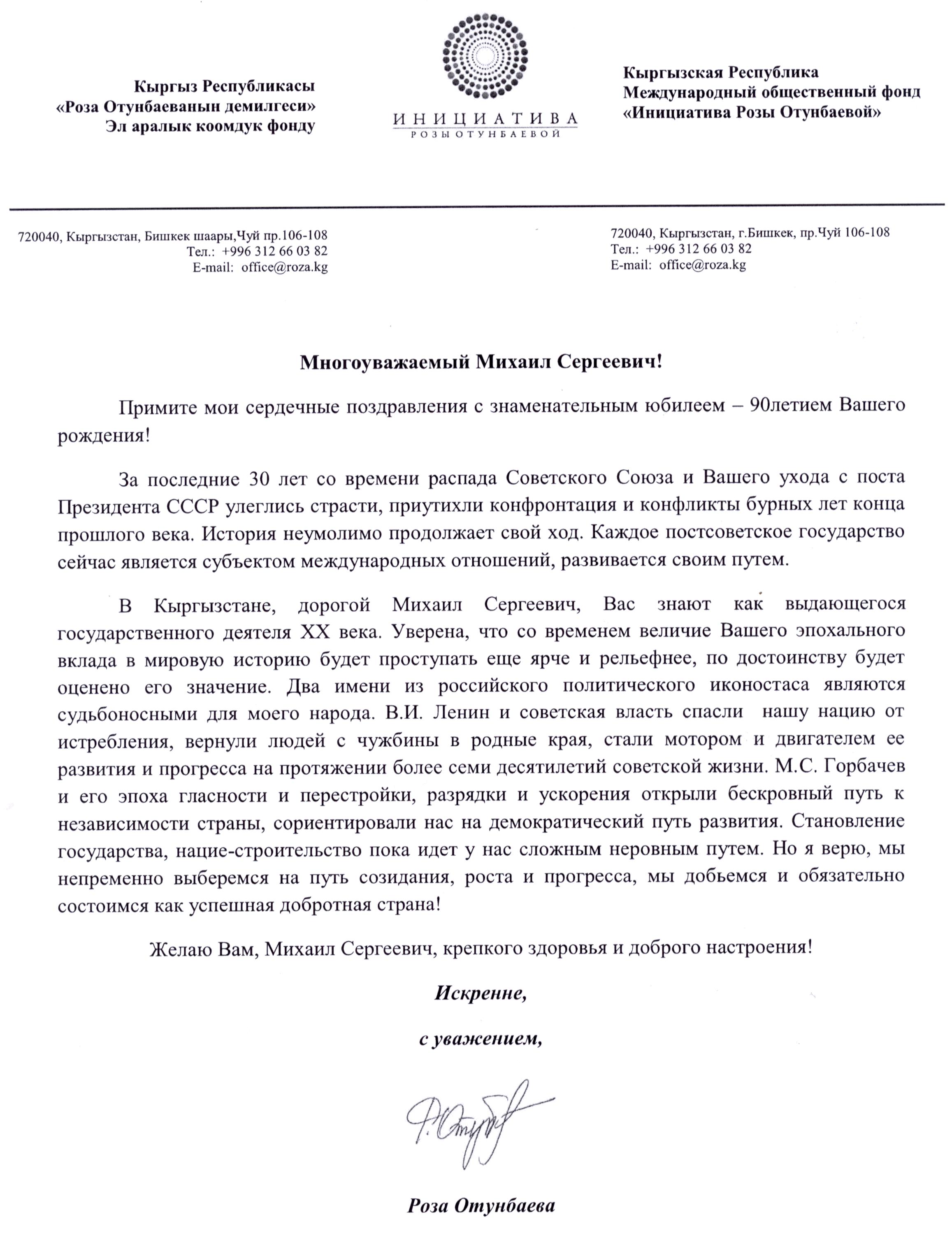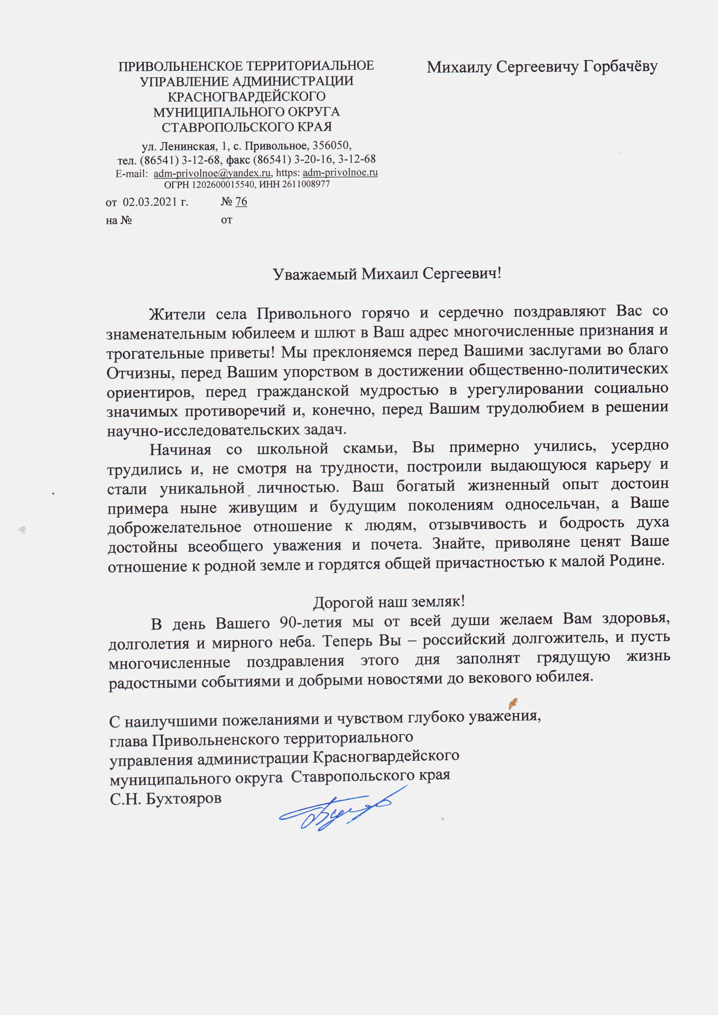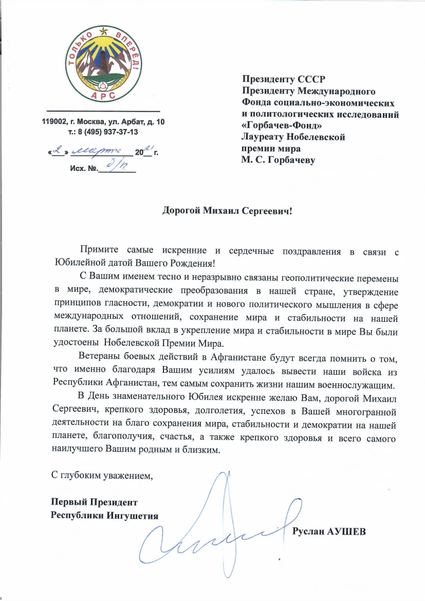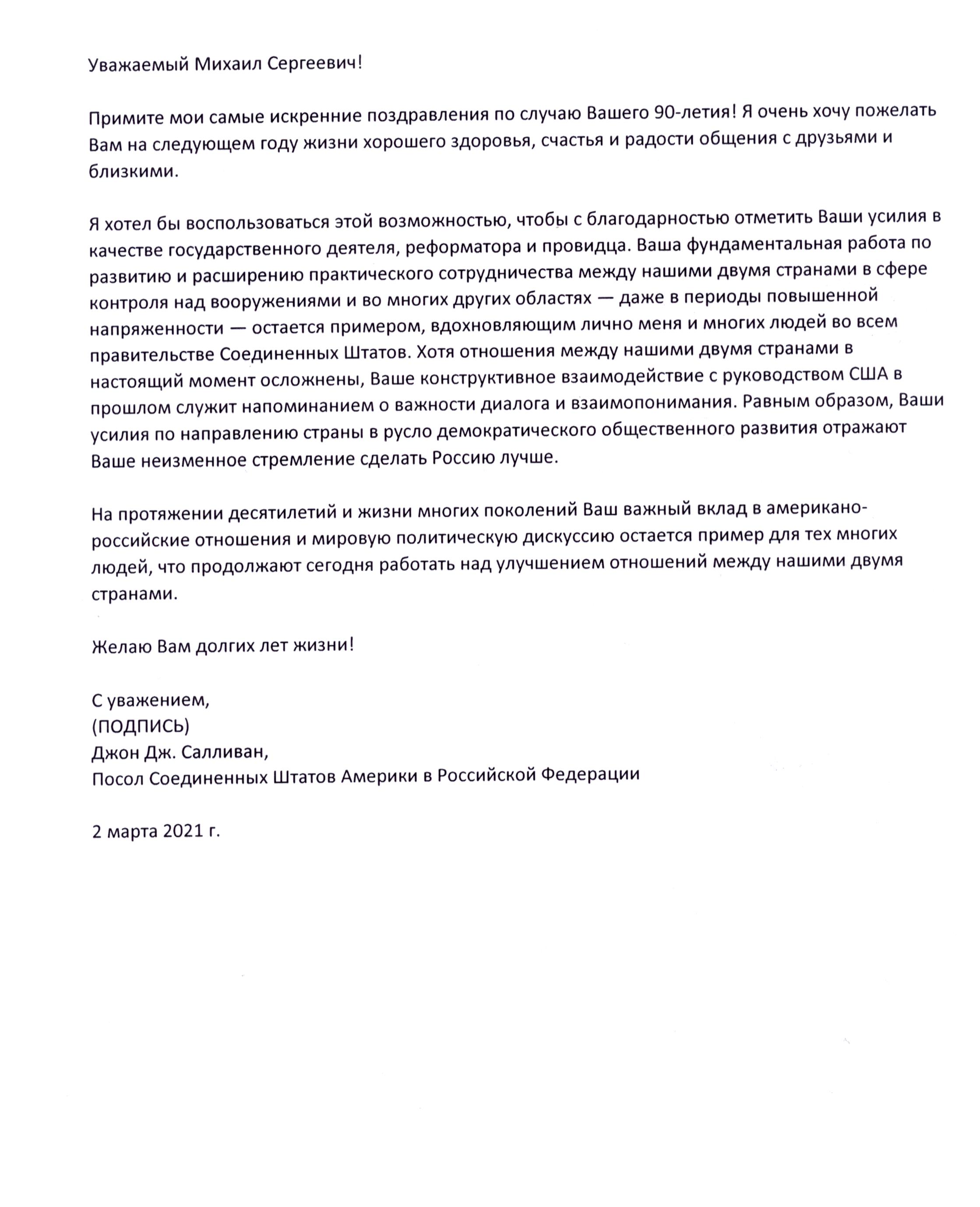 Глубокоуважаемый господин Президент, дорогой Михаил Сергеевич!