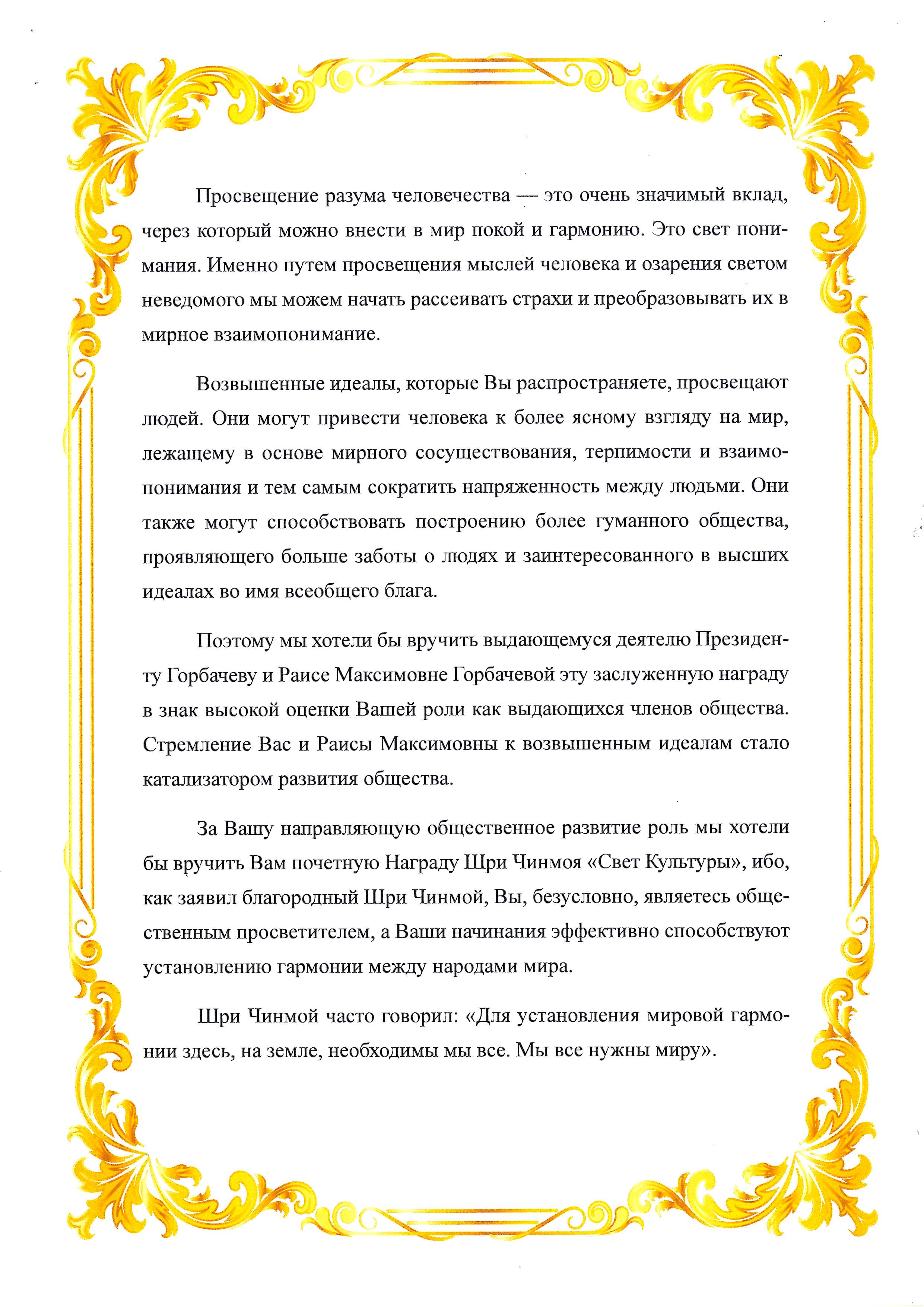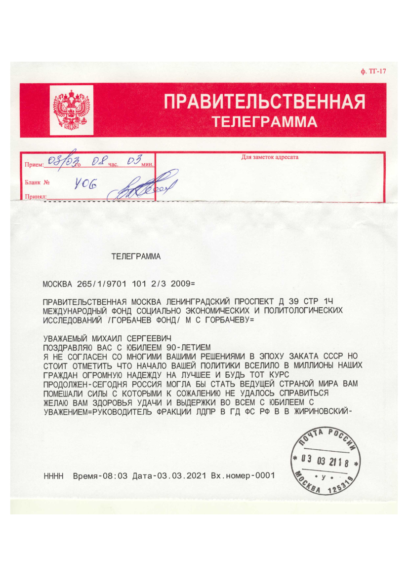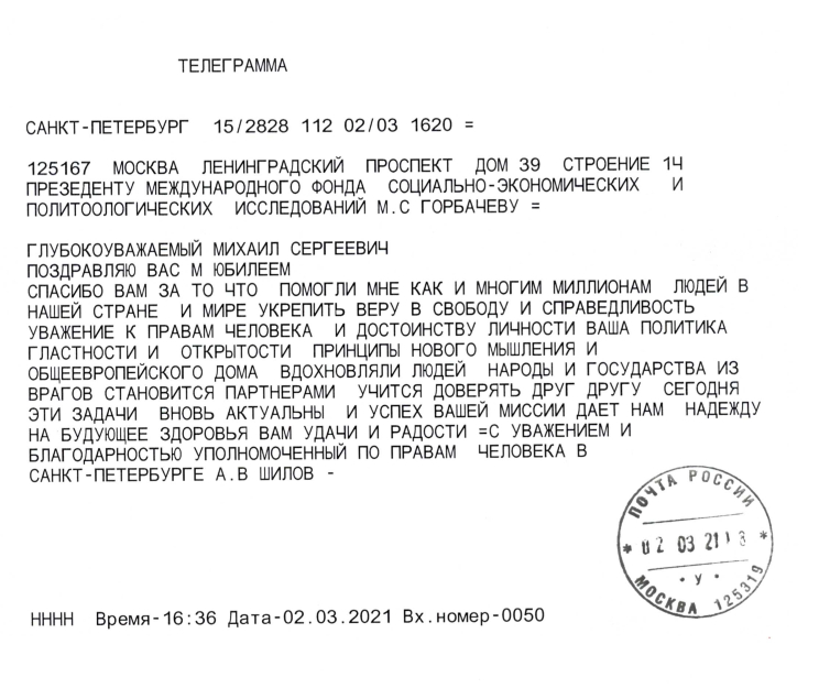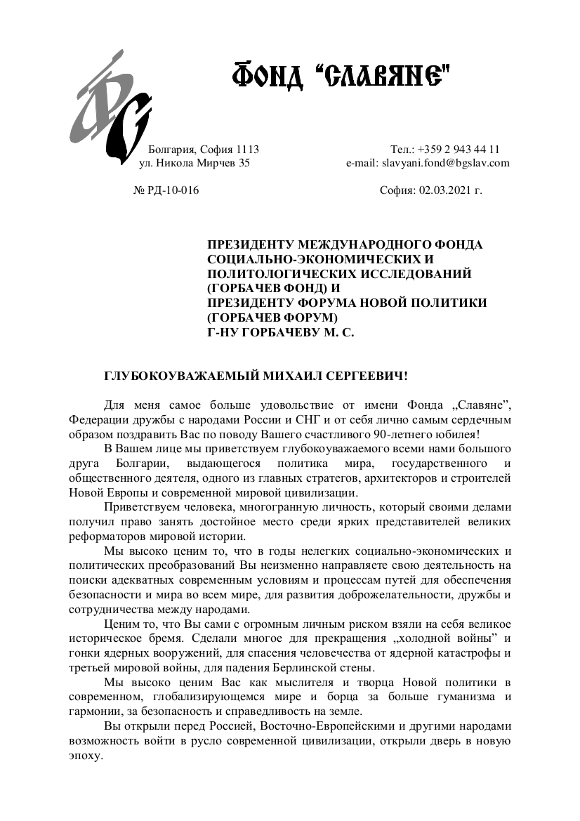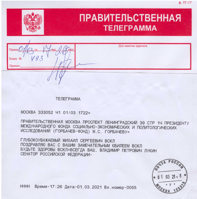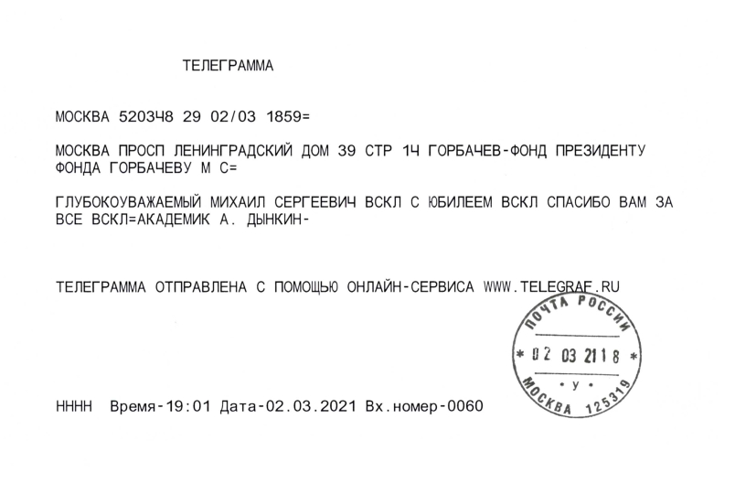 Глубокоуважаемый господин Президент, дорогой Михаил Сергеевич!