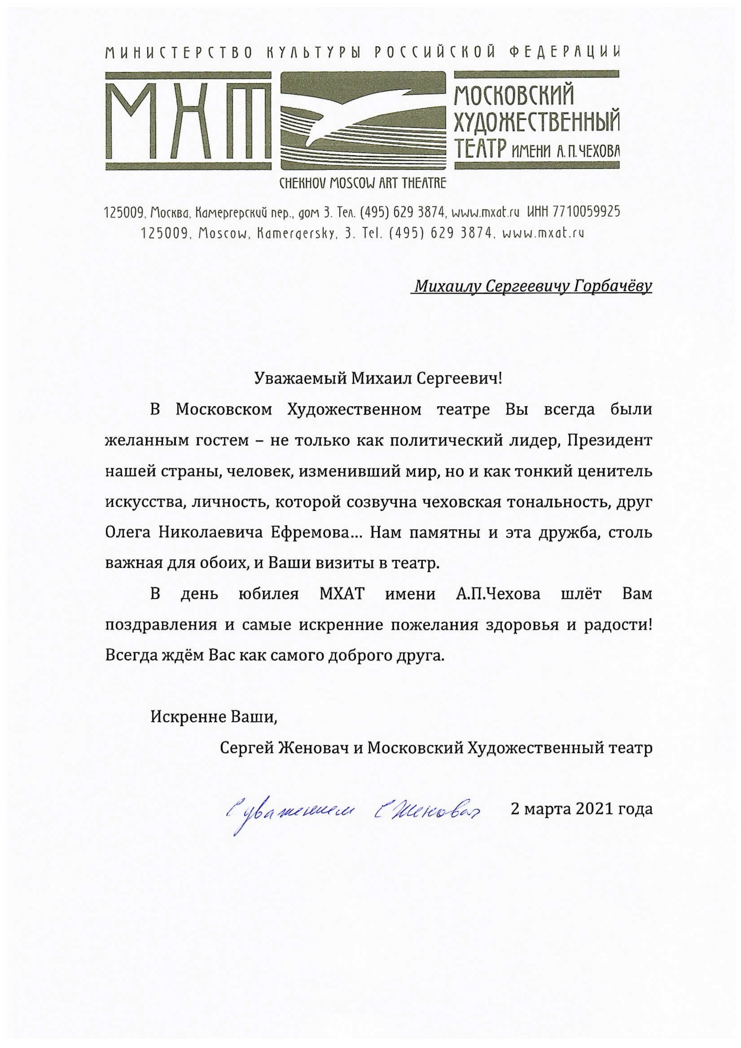 ![]() Поздравление Московского академического театра им. А.П. Чехова