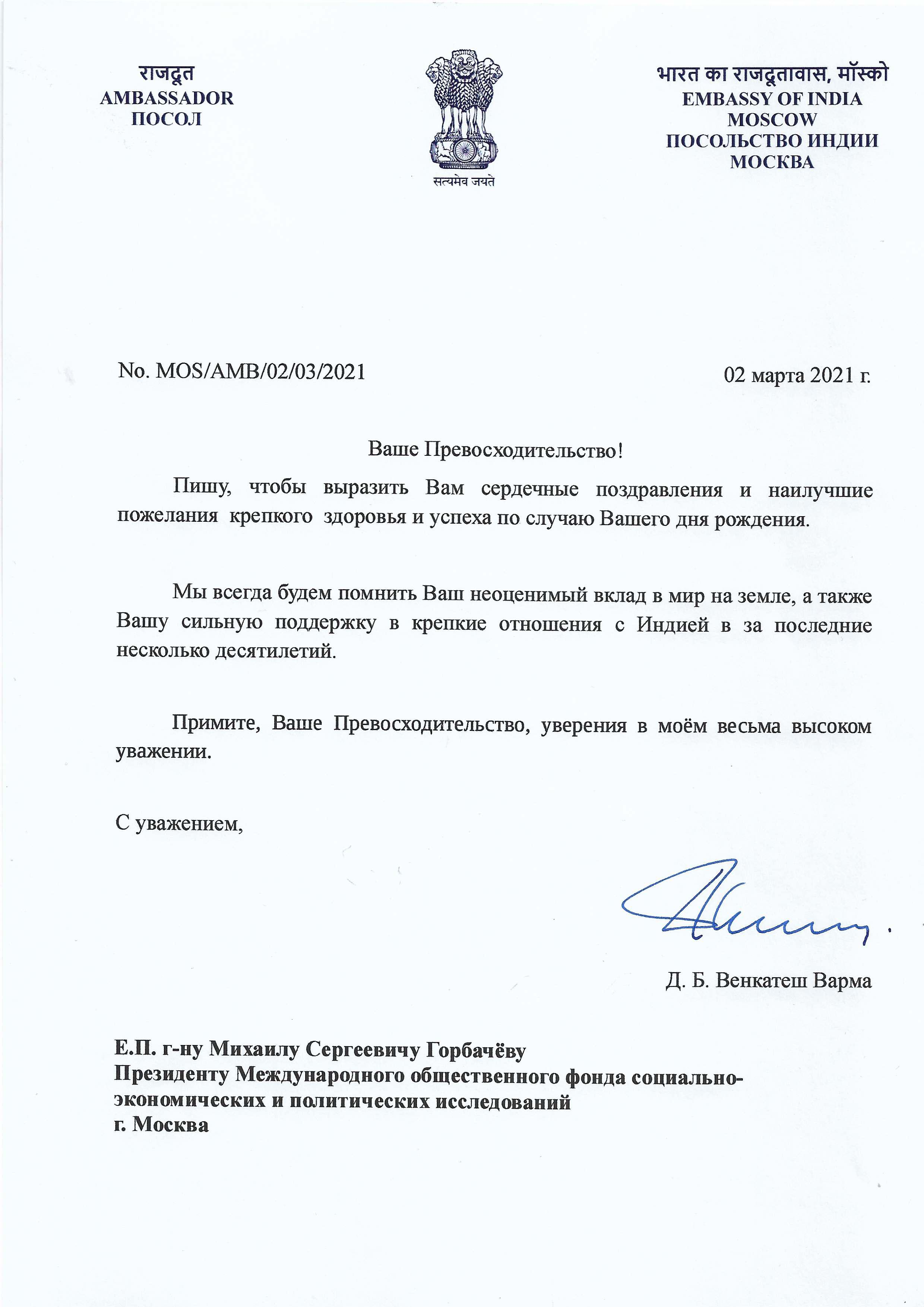 ![]() Поздравление посла Индии в РФ Венкатеша Варма