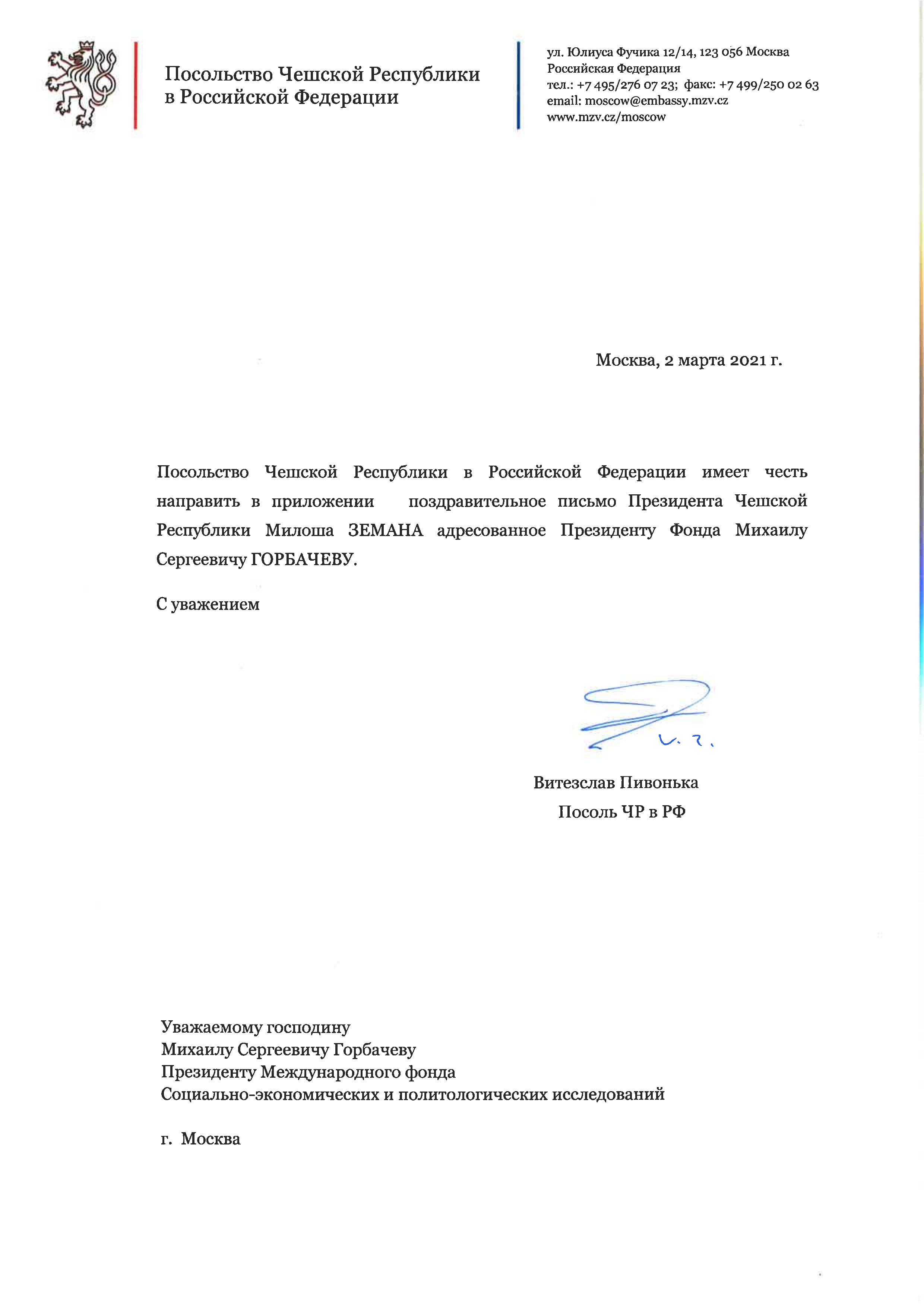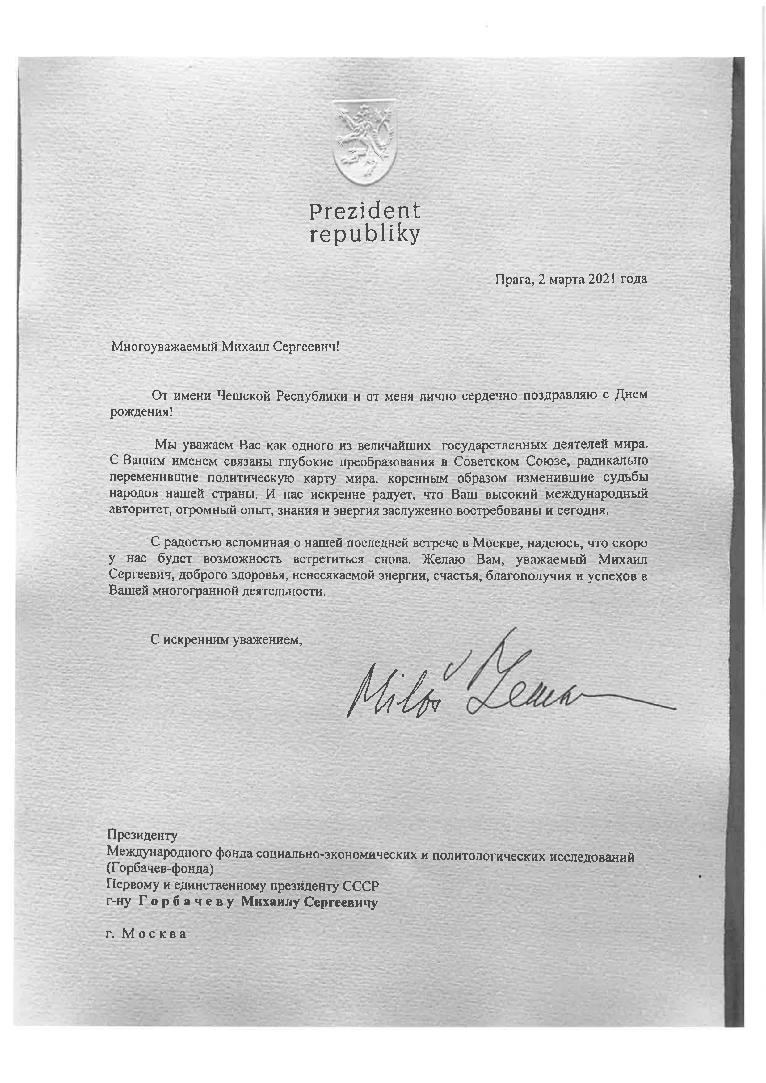 ![]() ![]() Поздравление Президента Чешской Республики Милоша Земана