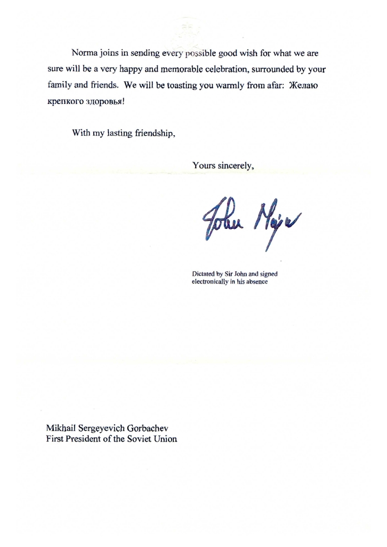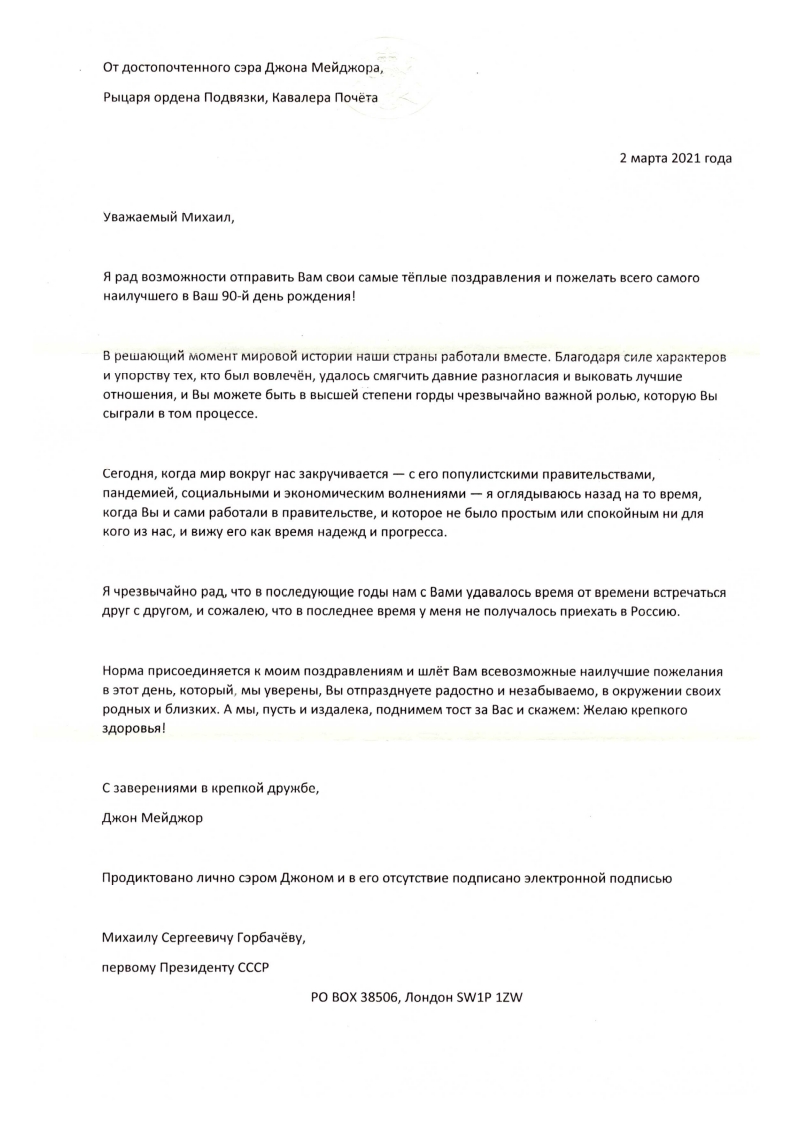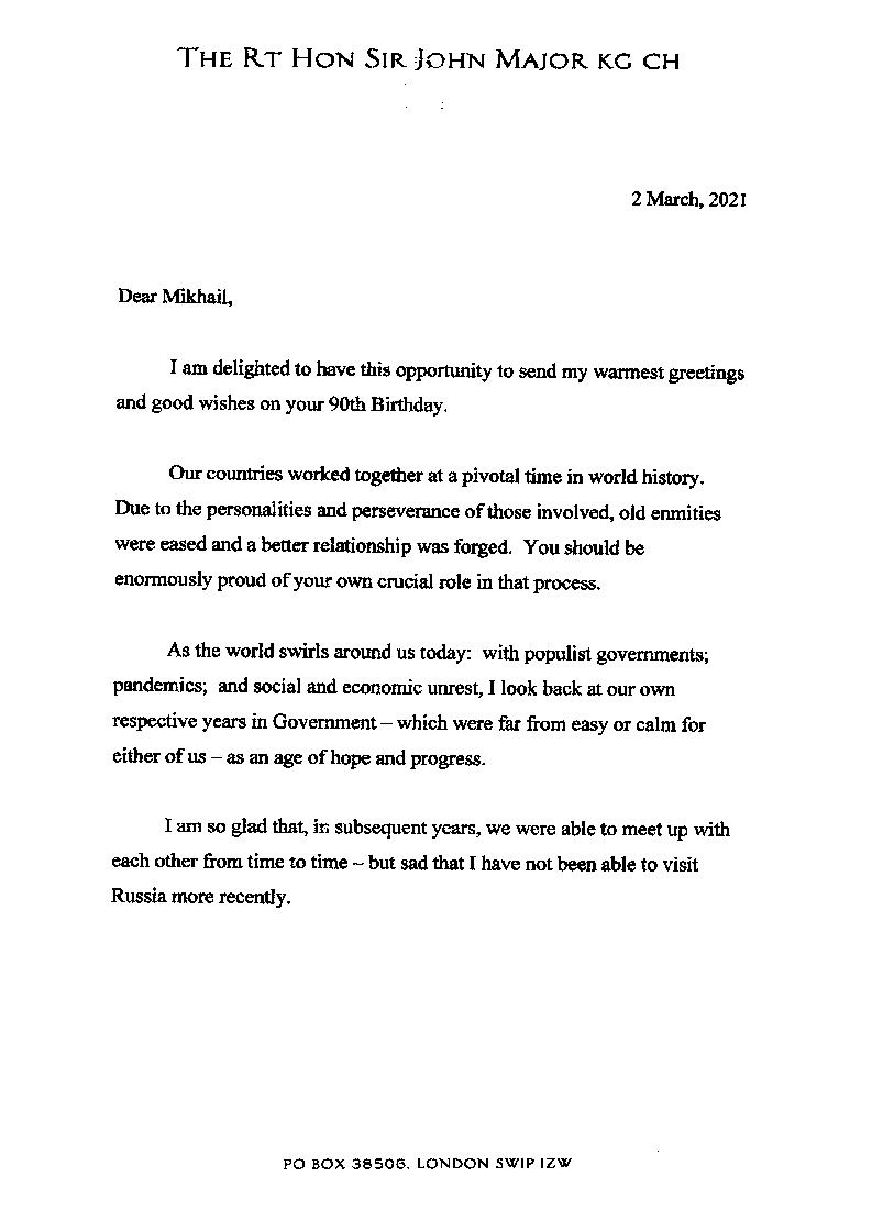 ![]() Поздравление бывшего премьер-министра Великобритании Джона Мейджора