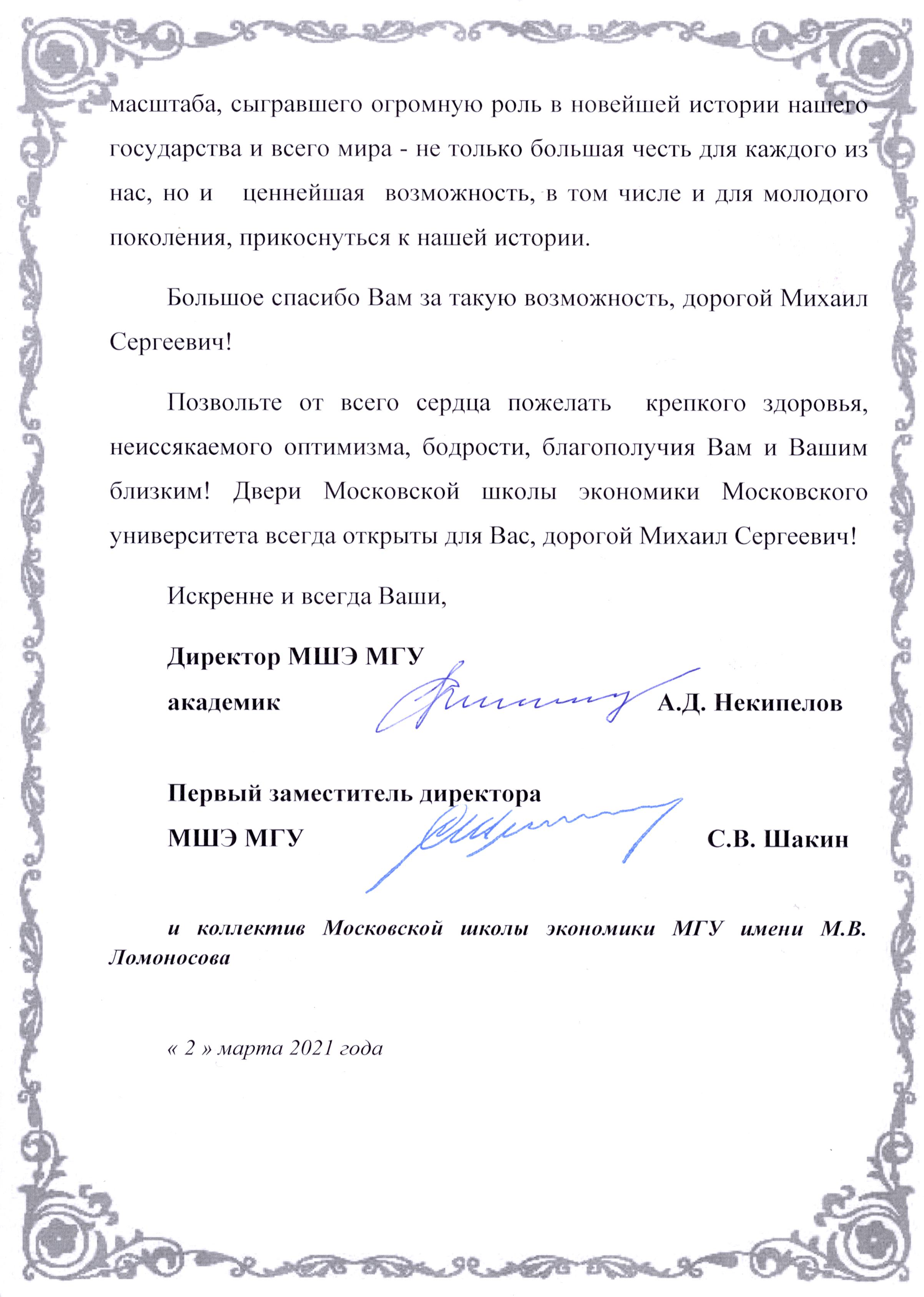![]() Поздравление от имени коллектива Московской школы экономики МГУ имени М.В.Ломоносова (Некипелов_МШЭ МГУ)