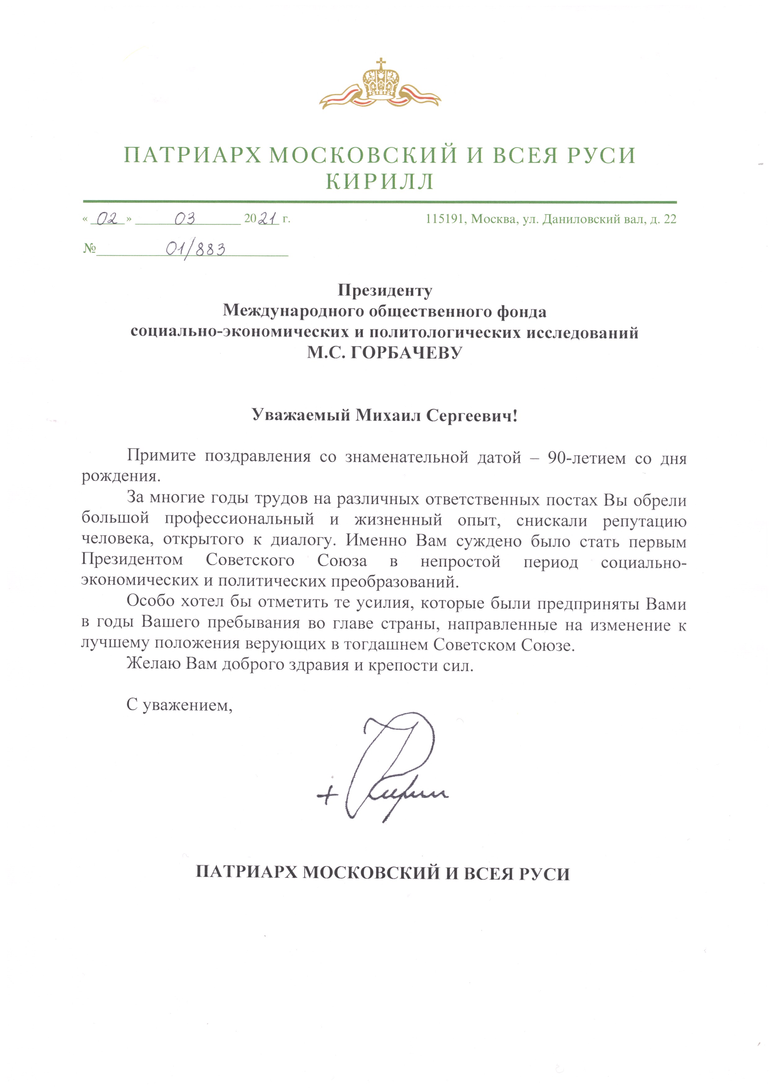 ![]() Поздравление Патриарха Московского и Всея Руси Кирилла
