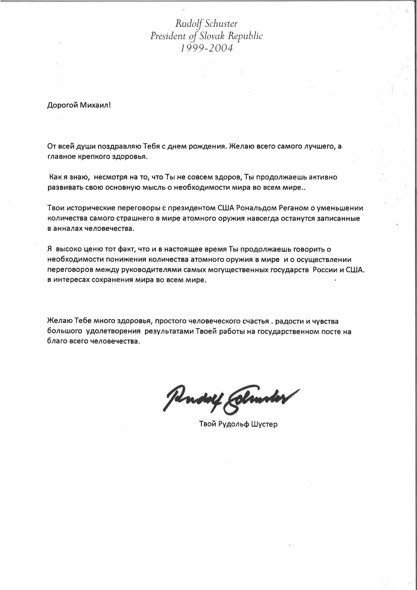 ![]() ![]() Поздравление бывшего Президента Словакии Рудольфа Шустера