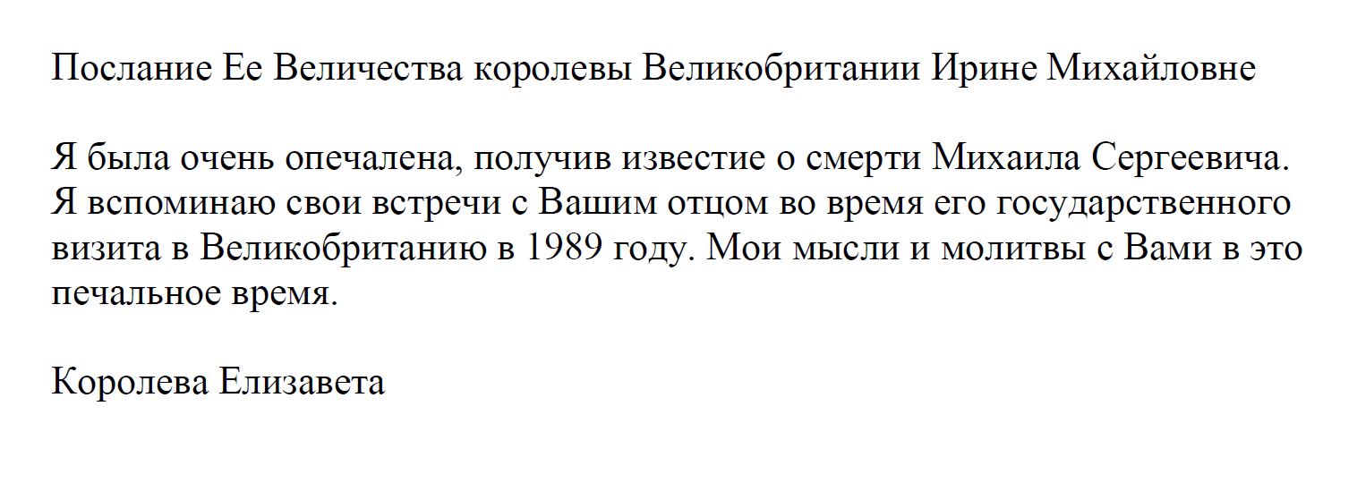 Уважаемая госпожа Вирганская, С большой грустью и тяжелым сердцем Великая герцогиня и я узнали новость о кончине Вашего дорогого отца Михаила Сергеевича Горбачева. Анри