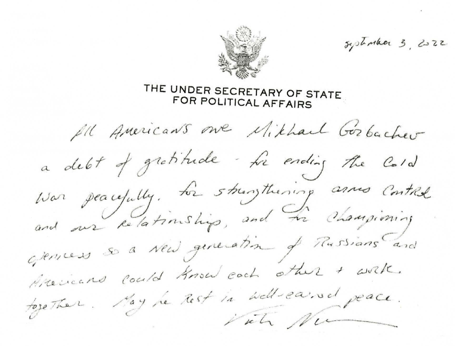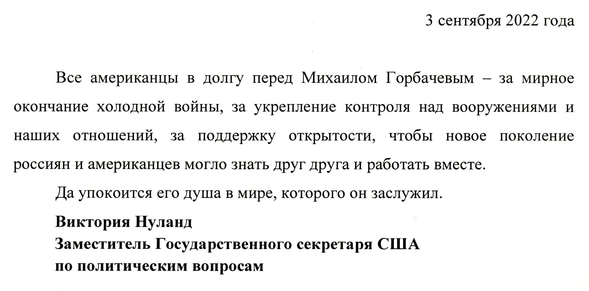 Примите мои искренние соболезнования в связи с кончиной Михаила Сергеевича Горбачева. Энтони Блинкен