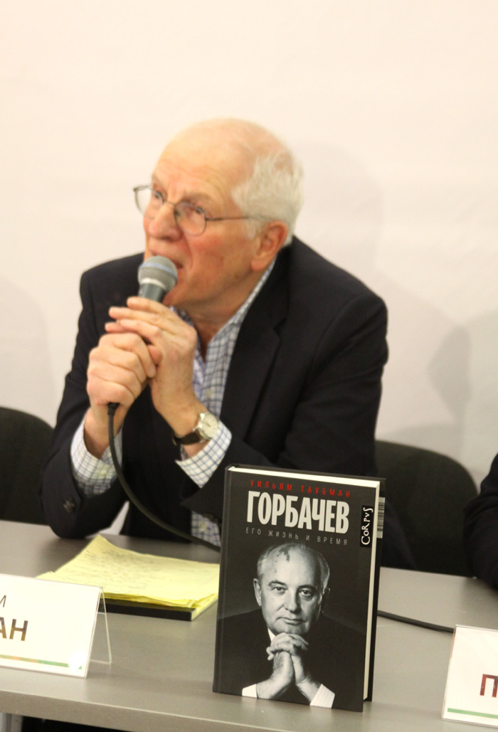 Слева направо: Андрей Архангельский (журналист), Билл Таубман, Павел Палажченко (Горбачев-Фонд), Ольга Здравомыслова (Горбачев-Фонд)