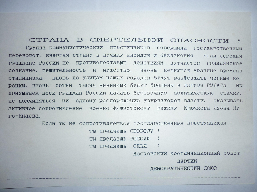 Если сегодня мы не будем профессионалами в истинном смысле этого слова, нам, несмотря на обреченность нынешнего путча, никогда уже ими не стать.